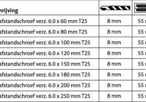 De Ivana afstandschroef 6×120 mm geeft je extra bereik wanneer je twee delen stevig en recht op afstand wilt monteren. Deze langere uitvoering is ideaal bij diepere stelruimtes, dikkere materialen of situaties waar standaard lengte simpelweg niet genoeg is. Perfect voor het stellen van kozijnen, het uitlijnen van rachels en het koppelen van houten of metalen constructies waarbij een vaste afstand belangrijk is.