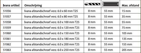 Pluspunten van deze Ivana afstandschroef