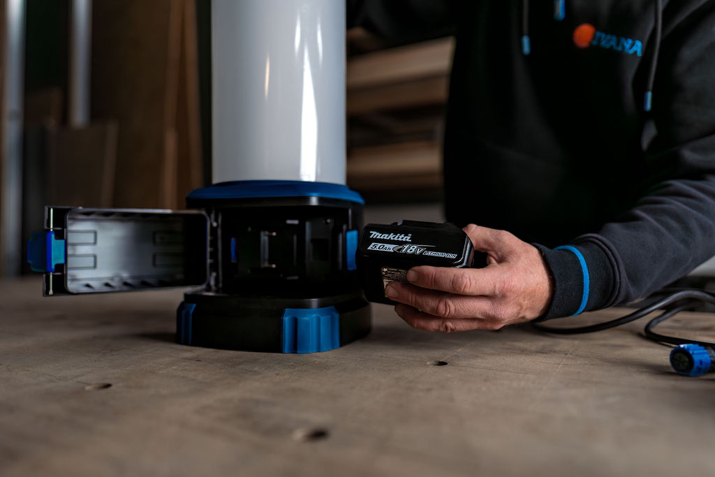 De hybride werking biedt maximale flexibiliteit: sluit de lamp aan op netstroom of gebruik een 18V accu van merken zoals Bosch, Makita, DeWalt, Stanley/Black & Decker of Metabo. Met de meegeleverde 4 accu-converters wissel je eenvoudig tussen verschillende systemen.